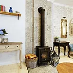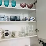 Strykjärn med strykbräda, strykutrustning och öppen spis samt köksredskap, ugn och kylskåp finns också här. Lägenheten har ett badrum med bidé och dusch.